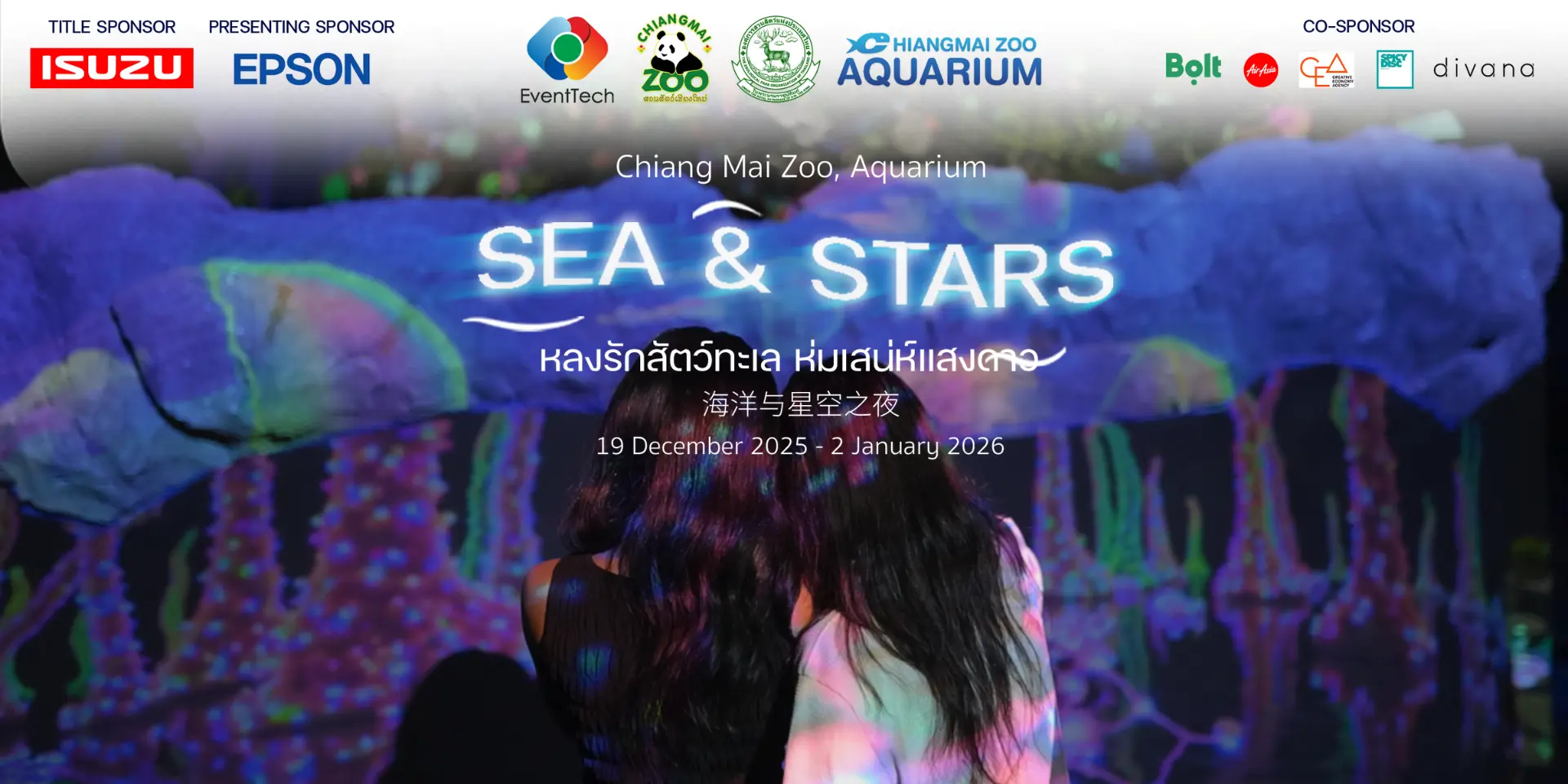 ครั้งแรกในเชียงใหม่! ที่ “แสง สี เสียง” และ “ศิลปะ immersive” ถูกนำมาผสานเข้ากับโลกใต้น้ำอย่างเต็มรูปแบบ ให้ทุกคนได้สัมผัสบรรยากาศกลางคืนที่แตกต่างจากที่เคยเห็นในสวนสัตว์เชียงใหม่ 🌌🐠