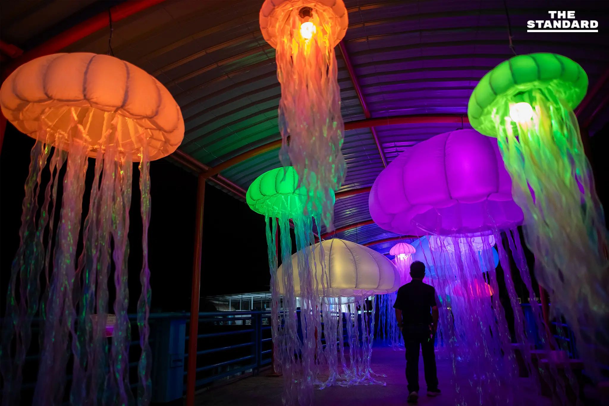 ผ่านการฉายภาพ Ocean Mapping, โซน Jelly Dome Installation, และเส้นทางเดินชม Aquarium Night Trail